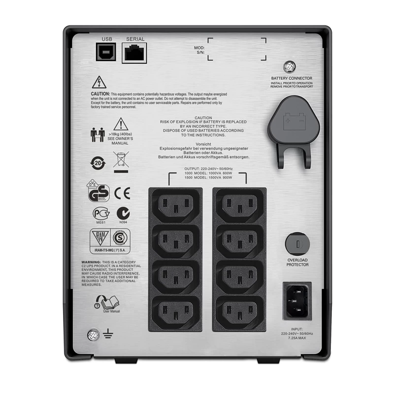 180-287 В, IEC C14, 230 В, 1500 ВА, 900 Вт, 8, 8, IEC C13, 8, 0, 230 В, 24.09 кг, 171 мм, 439 мм, 219 мм, линейно-интерактивный, напольный, 459 Дж, 1/1, моноблочный, 5 мин |