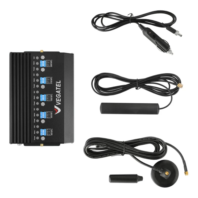 Автомобильный комплект VEGATEL AV1-5B-kit предназначен для усиления сигнала сотовой связи в подвижных объектах (автомобилях, суднах, лифтах и т.д). Работает одновременно в пяти частотных диапазонах 800 МГц, 900 МГц, 1800 МГц, 2000 МГц и 2600 МГц в сотовых сетях следующих стандартов: 2G (EGSM/GSM-900/1800), 3G (UMTS900/2100), 4G (LTE800/1800/2600) и позволяет добиться качественного усиления сигнала внутри транспортного средства. Разработан комплект с учетом возможности самостоятельной установки, либо в специализированном сервисе, при возникновении вопросов вы всегда сможете связаться с нашими специалистами. Состоит комплект VEGATEL AV1-5B-kit из репитера (устанавливается внутри транспортного средства), всепогодной антенны (устанавливается на крыше транспортного средства), комнатной антенны (устанавливается внутри транспортного средства), адаптера питания и крепежей.