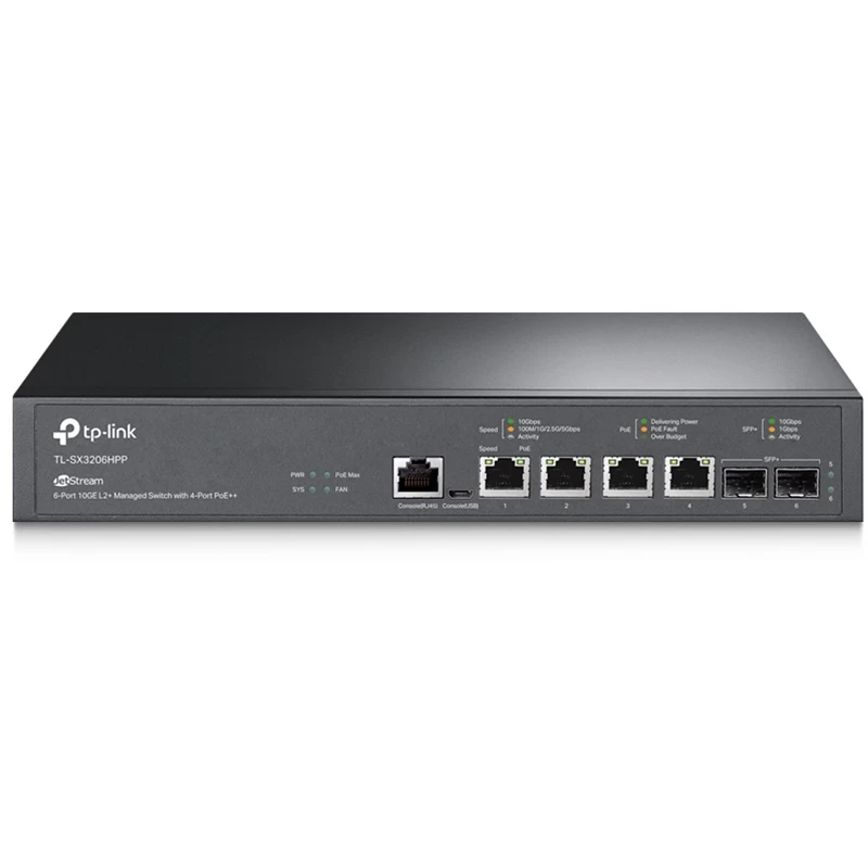 - PoE++ с бюджетом 200 Вт: четыре порта 10 Гбит/с с поддержкой стандарта PoE++ (802.3af/at/bt) и бюджетом до 60 Вт на порт создадут идеальные условия для подключения точек доступа Omada Wi‑Fi 62.