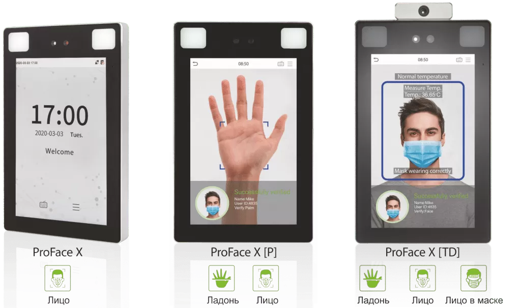 Серия ProFace X является полностью обновленной версией линейки устройств ProFace. Серия ProFace X оснащена специализированным процессором ZKTeco для распознавания лиц и новейшей технологии компьютерного зрения, поддерживает распознавание лиц и ладони.